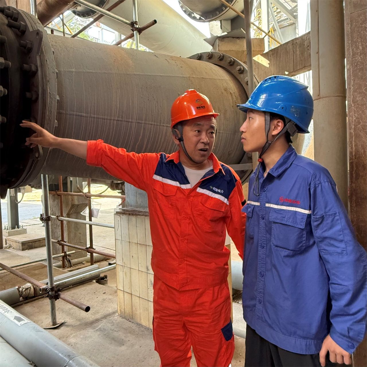 “師傅從不嫌棄我底子薄,總說(shuō)‘笨辦法有時(shí)候就是好辦法’?!睆?zhí)熨n對(duì)現(xiàn)場(chǎng)的管道走向、吸收塔的內(nèi)部結(jié)構(gòu)不熟悉,孫禺就拉著他在現(xiàn)場(chǎng)跑了一遍又一遍,拿扳手當(dāng)教具講原理。遇到專(zhuān)業(yè)術(shù)語(yǔ),孫禺怕他聽(tīng)不懂,就打比方:“你就把漿液循環(huán)泵想成家里的抽水機(jī),它‘偷懶’了,塔里頭的‘活兒’就干不好了?!睘榱藥蛷?zhí)熨n補(bǔ)理論短板,孫禺把自己多年來(lái)攢下的筆記搬了出來(lái)。那些泛黃的紙頁(yè)上,有工整的脫硫反應(yīng)化學(xué)方程式,有不同工況下的參數(shù)對(duì)比,甚至還有用紅筆標(biāo)注的“易錯(cuò)點(diǎn)”。