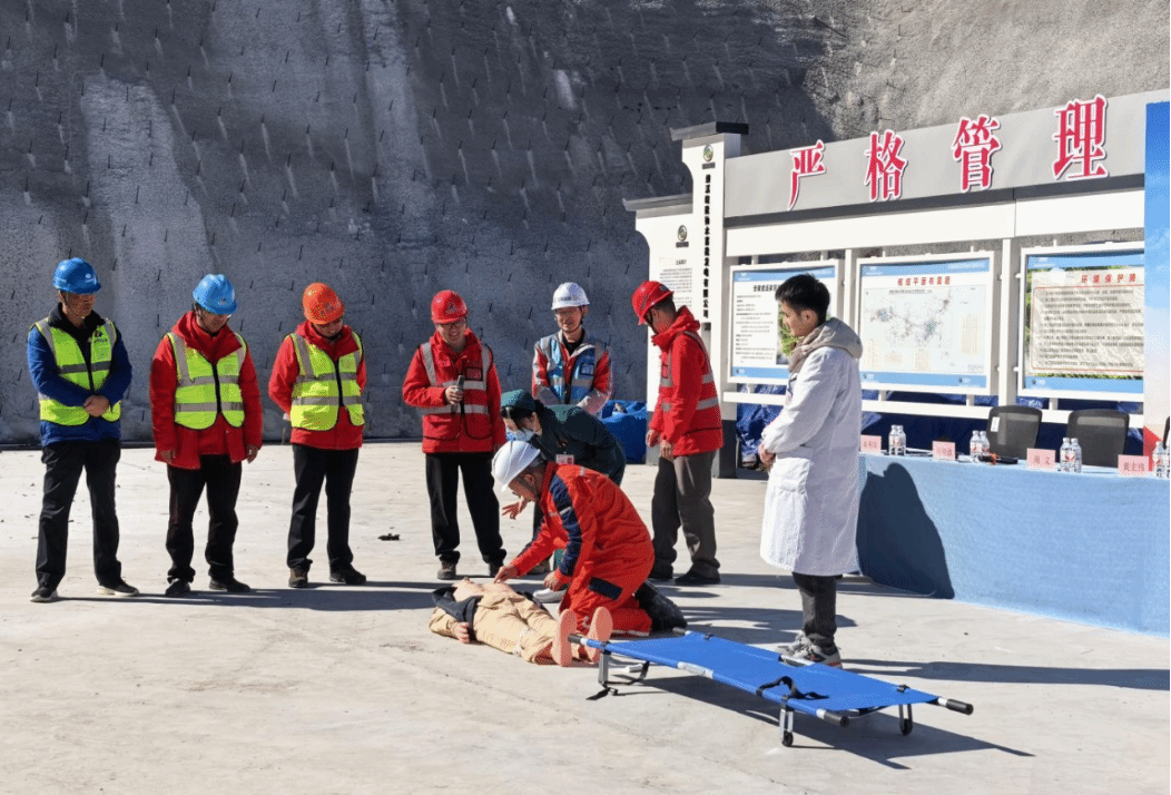 在進(jìn)廠交通洞區(qū)域,模擬有限空間有毒有害氣體超標(biāo)場(chǎng)景,值班人員發(fā)現(xiàn)儀器警報(bào)后,立即組織人員撤離并加大通風(fēng),期間妥善處置1名人員絆倒受傷事件,經(jīng)逐級(jí)上報(bào)后啟動(dòng)專項(xiàng)預(yù)案,搶險(xiǎn)隊(duì)伍快速救援、后勤組現(xiàn)場(chǎng)包扎并送醫(yī);兩場(chǎng)演練同步推進(jìn)、各環(huán)節(jié)銜接緊密,不僅檢驗(yàn)了不同場(chǎng)景下應(yīng)急預(yù)案的可行性,更強(qiáng)化了各單位協(xié)同作戰(zhàn)能力,為項(xiàng)目安全生產(chǎn)筑牢雙重保障。