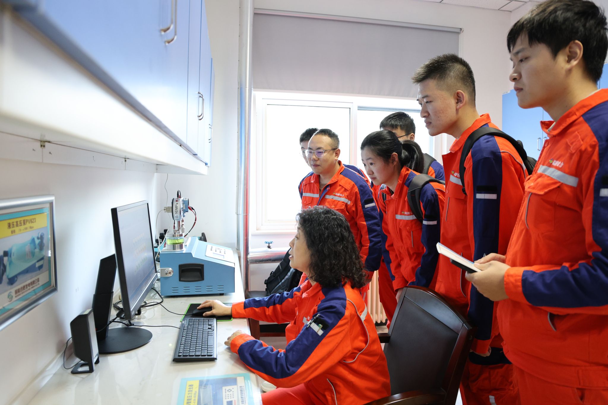 熱控專業(yè)則創(chuàng)新教學(xué)模式,在熱控標(biāo)準(zhǔn)室重點(diǎn)開展壓力變送器、壓力開關(guān)及壓力表檢定實(shí)操。針對(duì)壓力變送器檢定這一核心環(huán)節(jié),培訓(xùn)采用“標(biāo)準(zhǔn)化視頻教學(xué)+同步實(shí)操”模式,通過播放人力資源部精心制作的《壓力變送器檢定實(shí)操標(biāo)準(zhǔn)化教程》,幫助學(xué)員快速掌握操作要點(diǎn),實(shí)現(xiàn)從理論認(rèn)知到標(biāo)準(zhǔn)化操作的高效轉(zhuǎn)化。此外,在熱控勞模工匠人才創(chuàng)新工作室,學(xué)員們親身參與電動(dòng)執(zhí)行機(jī)構(gòu)安裝調(diào)試、PLC簡單組態(tài)、DCS簡單組態(tài)及小型控制系統(tǒng)搭設(shè)等實(shí)戰(zhàn)項(xiàng)目,通過"親手組態(tài)、親手調(diào)試"的實(shí)戰(zhàn)化訓(xùn)練,切實(shí)提升系統(tǒng)集成與故障處理能力。