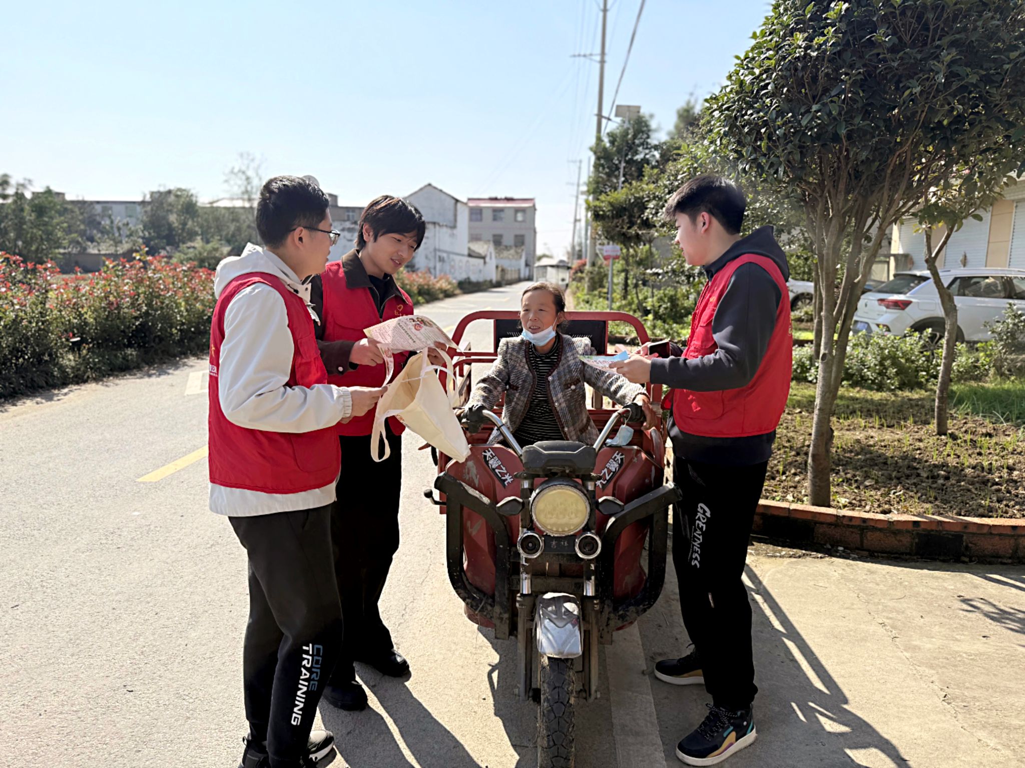 結(jié)對幫扶單位及駐村書記、村干部為居民發(fā)放宣傳單 何恒鑫(攝)