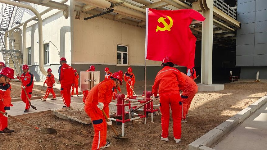 黨建引領(lǐng)聚合力,黨旗飄揚(yáng)煥新顏。9月10日下午,新疆皖能英格瑪電廠黨總支以“用實(shí)干擦亮初心底色”為主題,組織全體黨員和入黨積極分子開展廠區(qū)環(huán)境整治專項(xiàng)行動(dòng)。此次活動(dòng)聚焦廠區(qū)坑洼地帶,通過(guò)全員參與土地平整工作,以先鋒行動(dòng)激揚(yáng)干事創(chuàng)業(yè)熱情,用奮斗芳華扮靚公司環(huán)境。
