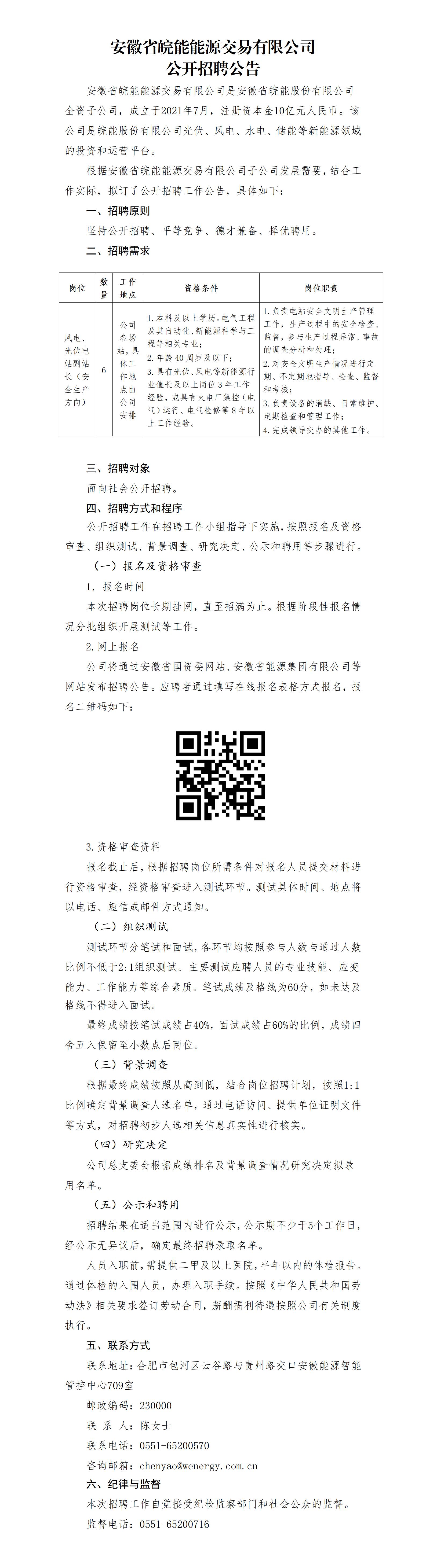 安徽省皖能能源交易有限公司公開招聘公告