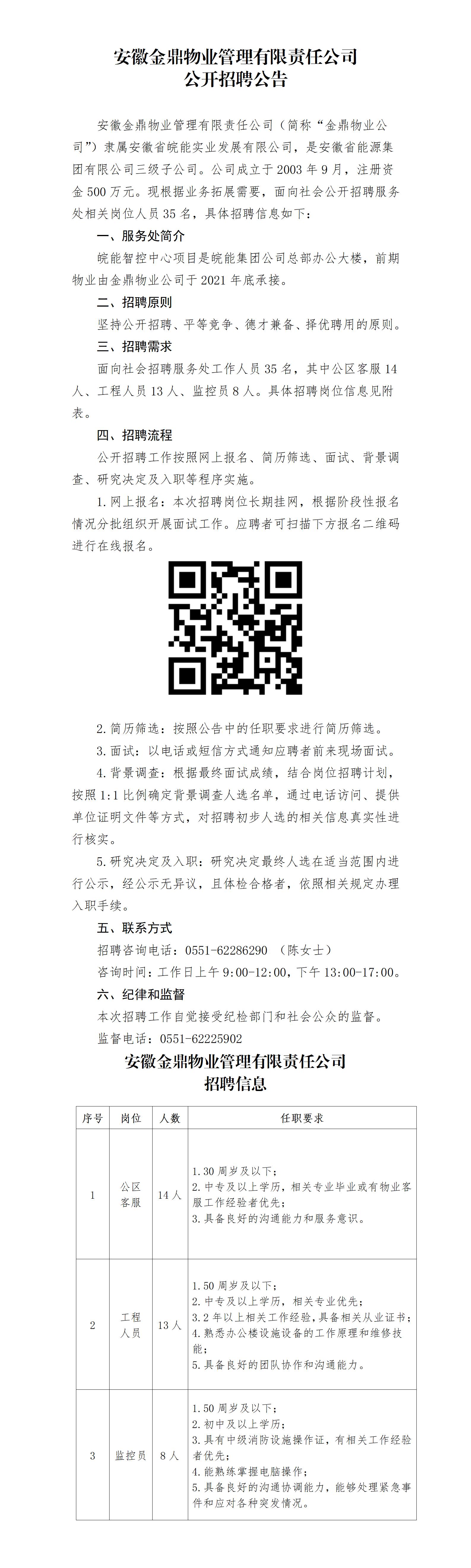 安徽金鼎物業(yè)管理有限責(zé)任公司公開(kāi)招聘公告
