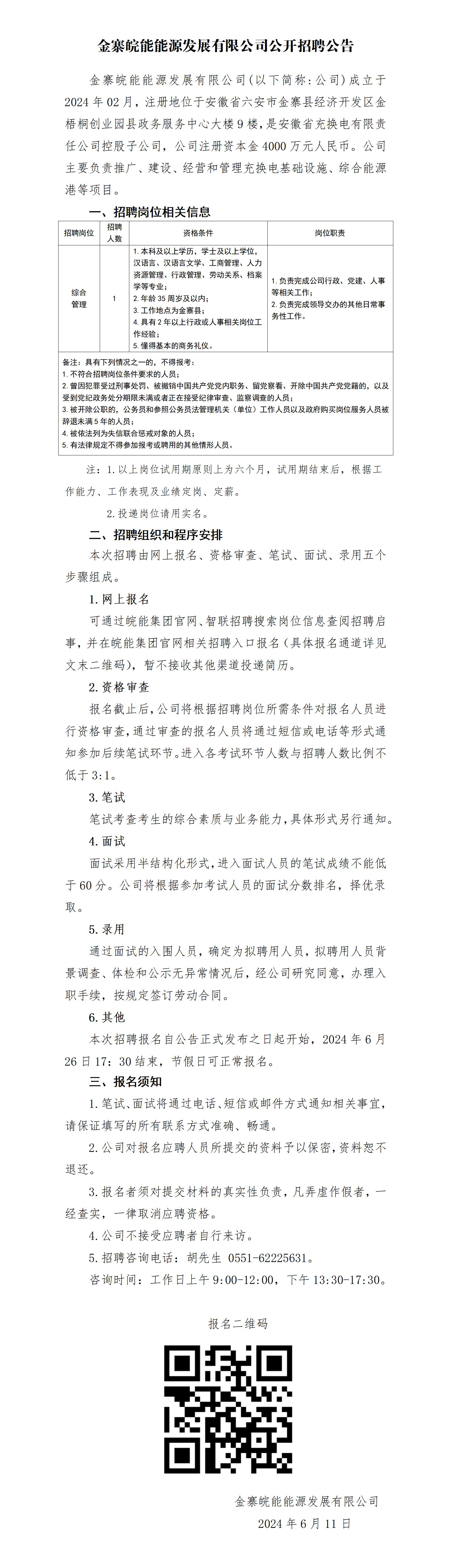 金寨皖能能源發(fā)展有限公司公開(kāi)招聘公告