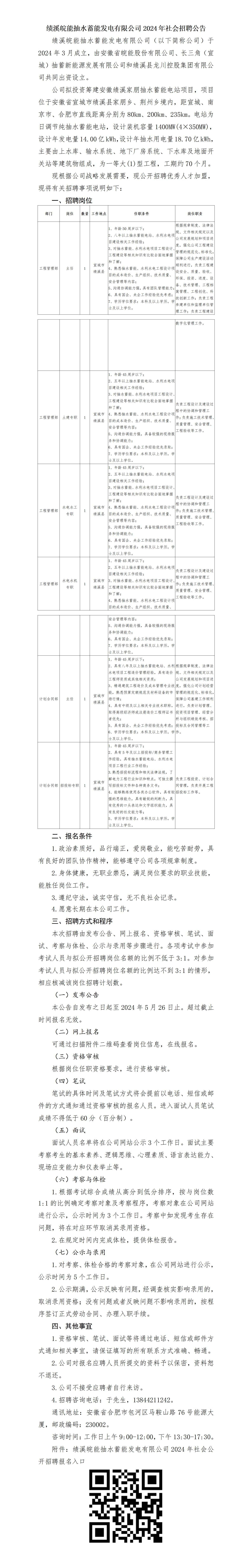 績溪皖能抽水蓄能發(fā)電有限公司2024年社會招聘公告