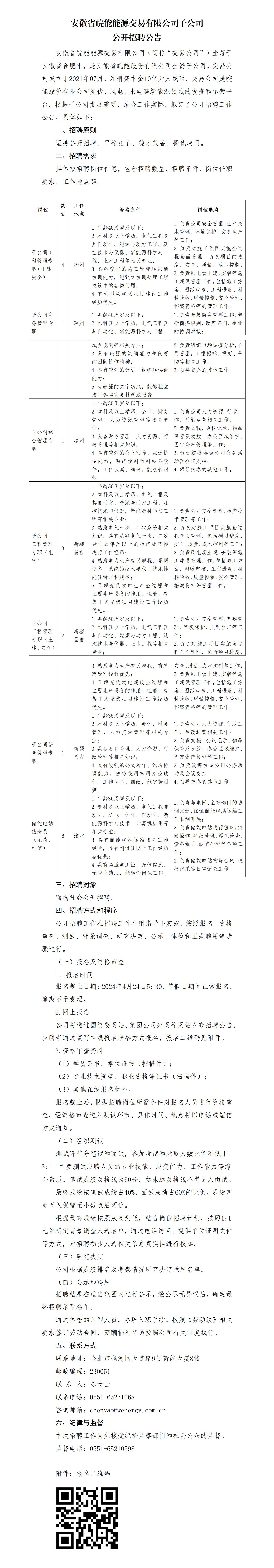 安徽省皖能能源交易有限公司子公司公開招聘公告
