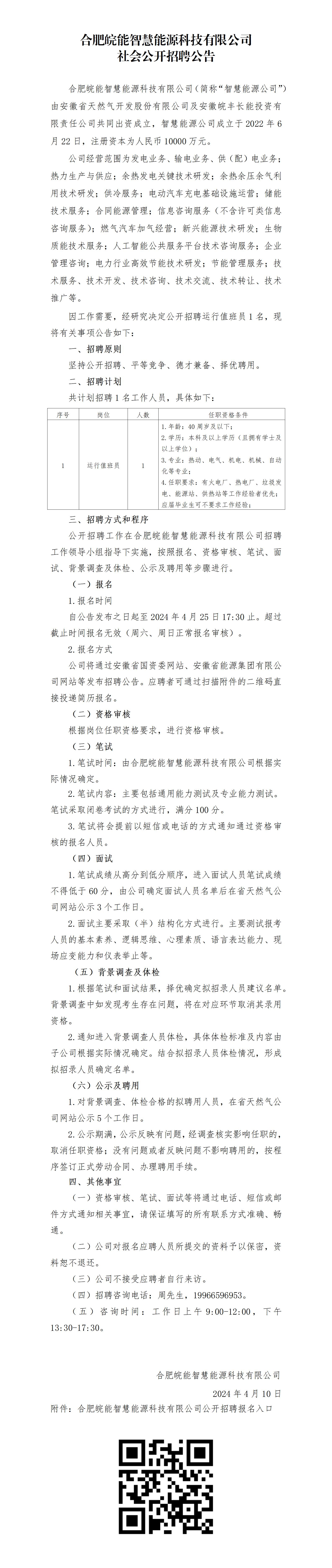 合肥皖能智慧能源科技有限公司社會(huì)公開(kāi)招聘公告
