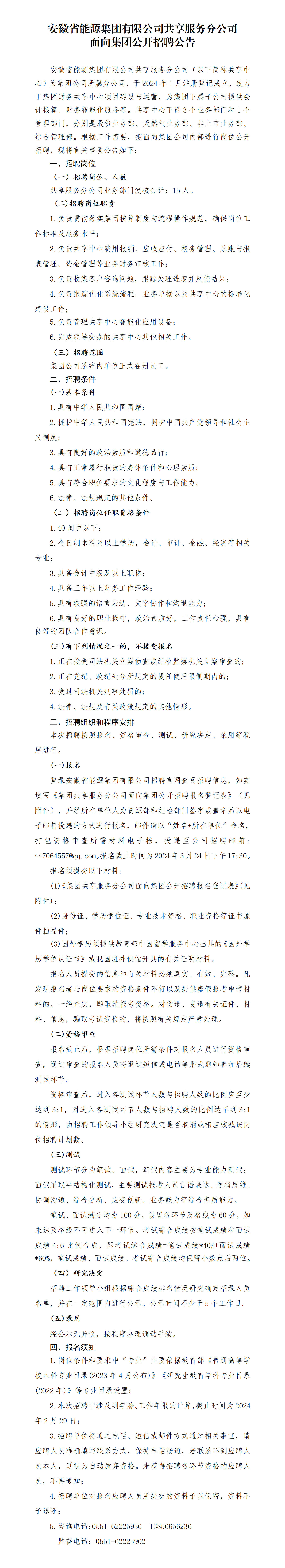 安徽省能源集團(tuán)有限公司共享服務(wù)分公司面向集團(tuán)公開招聘公告