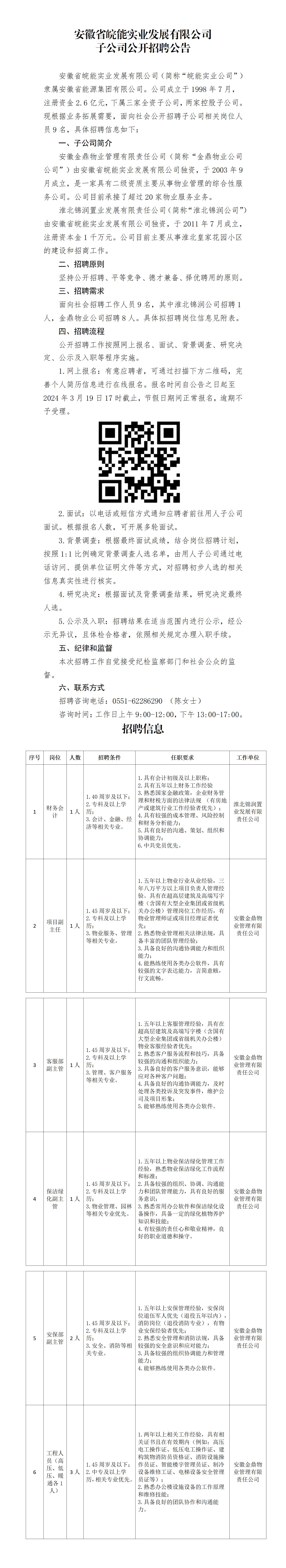 安徽省皖能實業(yè)發(fā)展有限公司子公司公開招聘公告