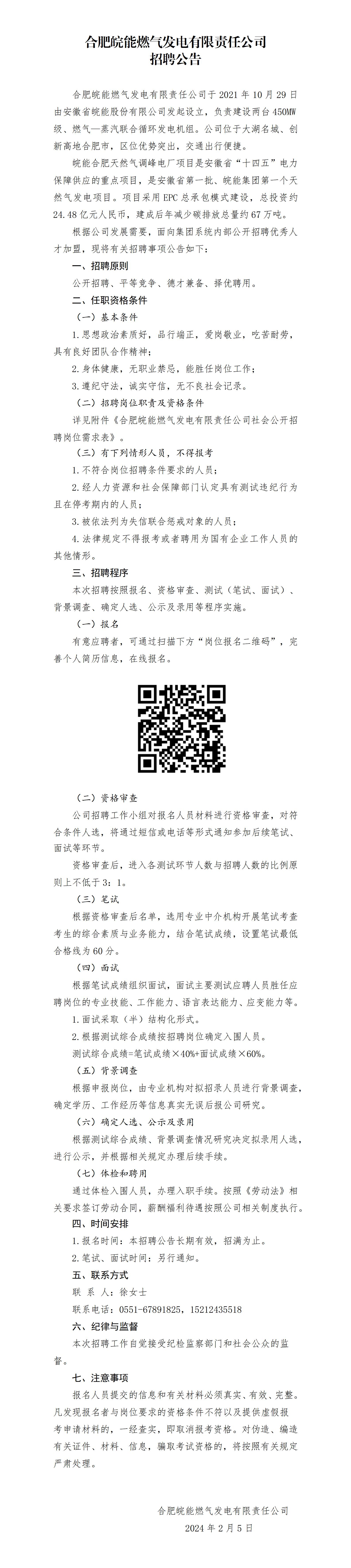 合肥皖能燃氣發(fā)電有限責任公司招聘公告