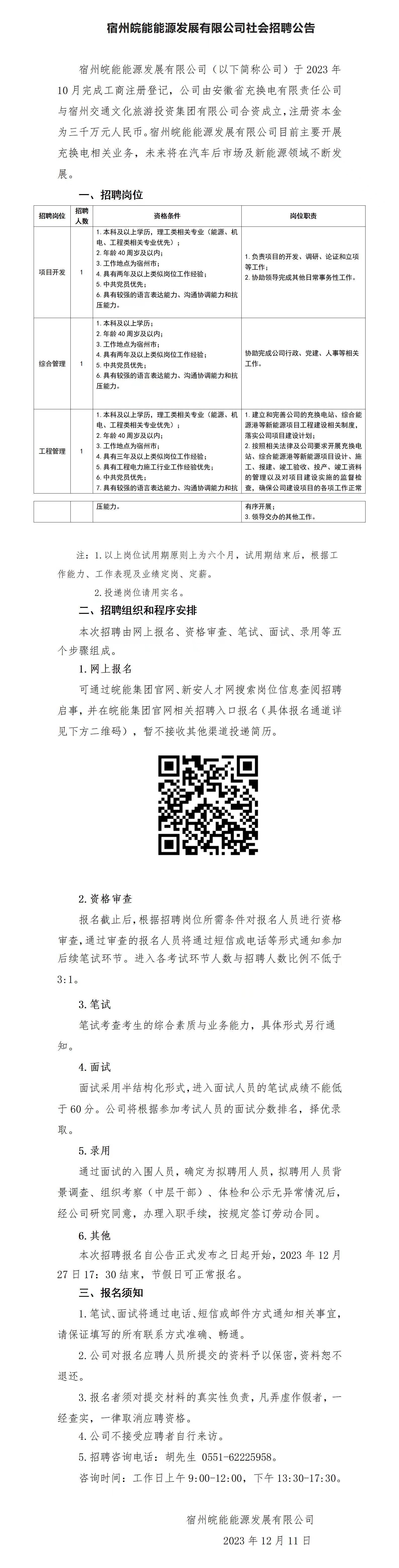 宿州皖能能源發(fā)展有限公司社會招聘公告
