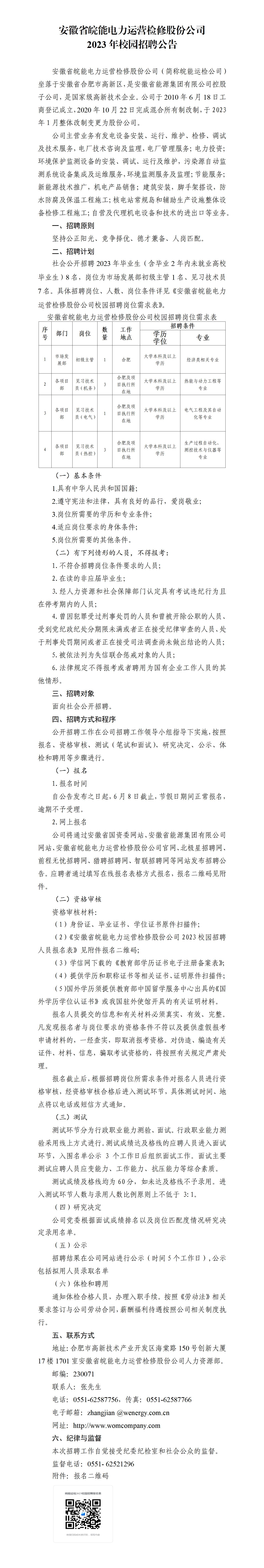 安徽省皖能電力運營檢修股份公司2023年校園招聘公告