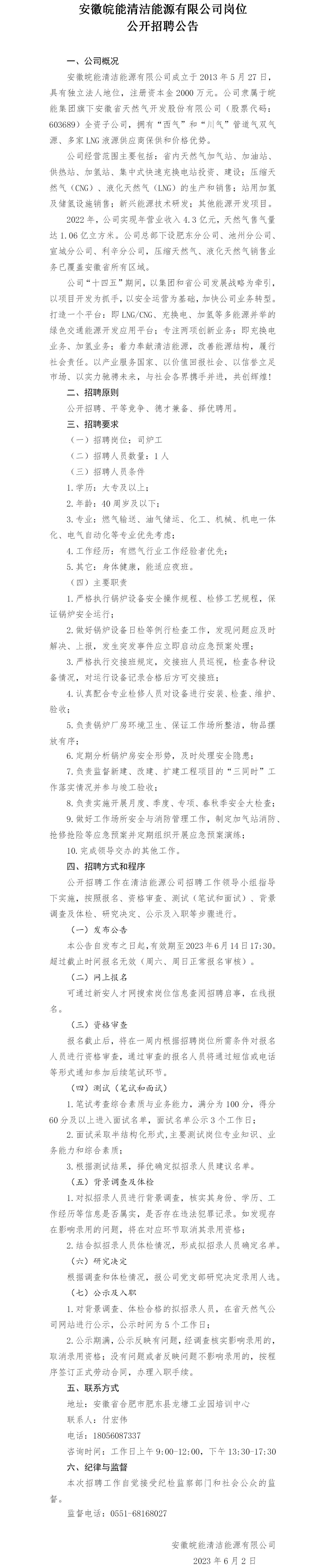 安徽皖能清潔能源有限公司崗位公開(kāi)招聘公告