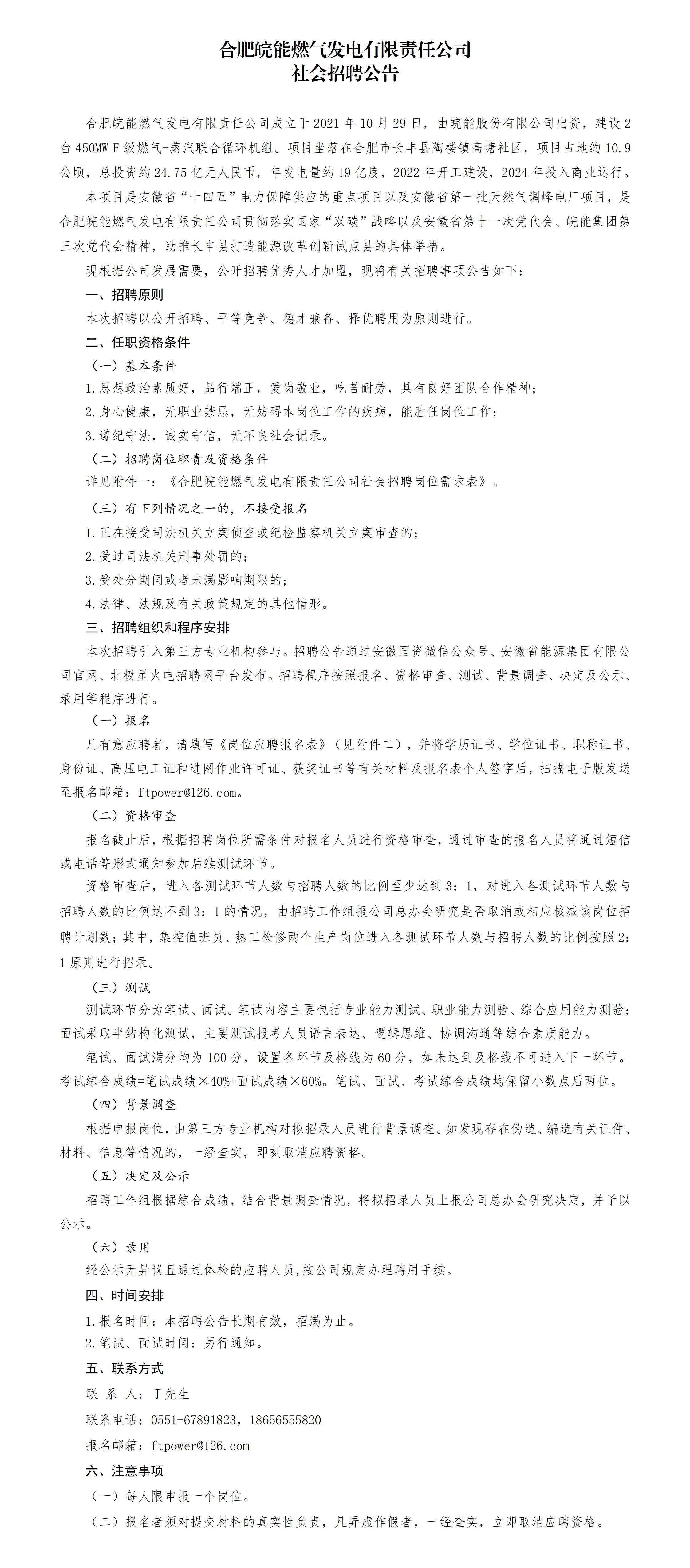 附件一 合肥皖能燃?xì)獍l(fā)電有限責(zé)任公司社會(huì)招聘崗位需求表.doc