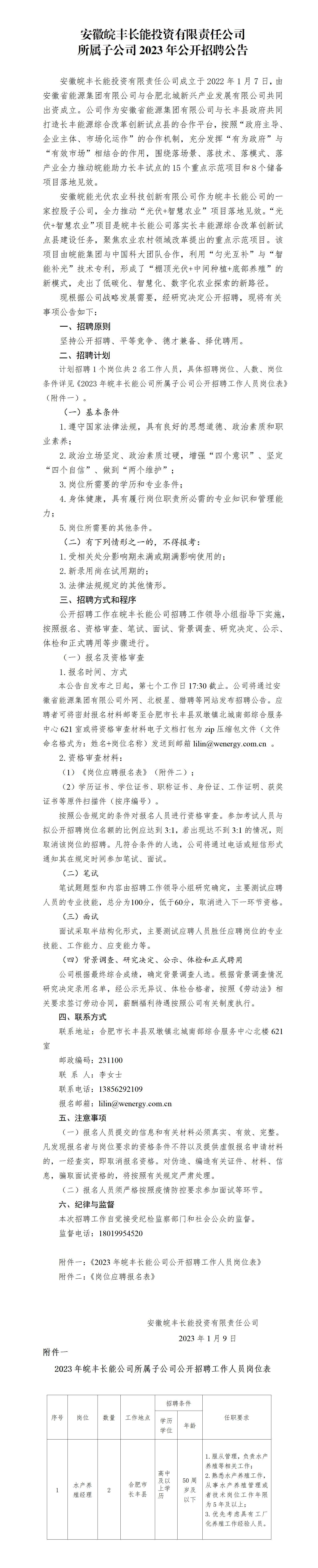 安徽皖豐長能投資有限責(zé)任公司所屬子公司2023年公開招聘公告