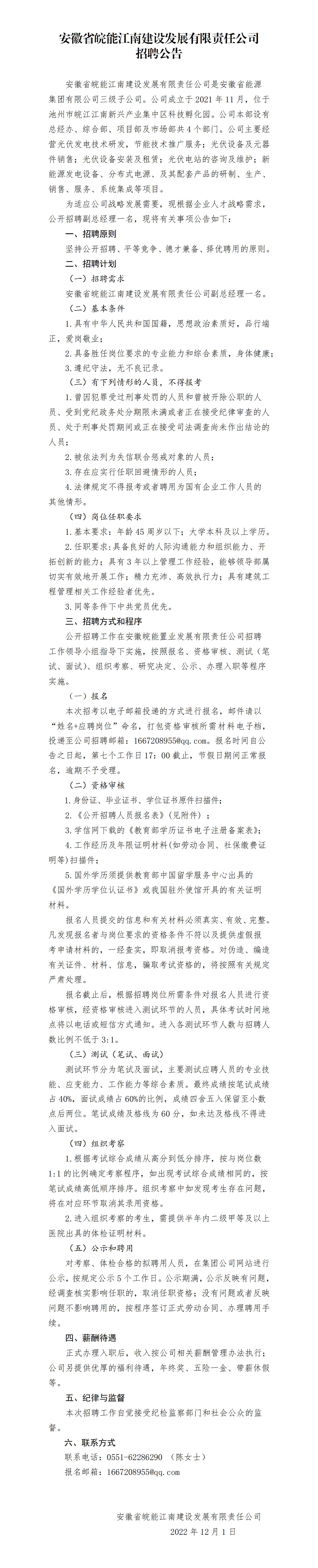 安徽省皖能江南建設(shè)發(fā)展有限責(zé)任公司招聘公告