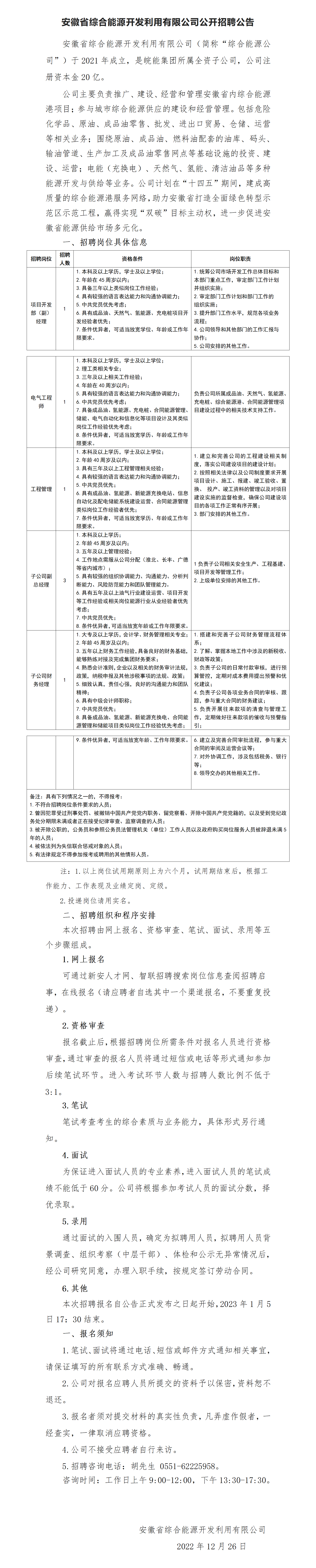 安徽省綜合能源開發(fā)利用有限公司公開招聘公告