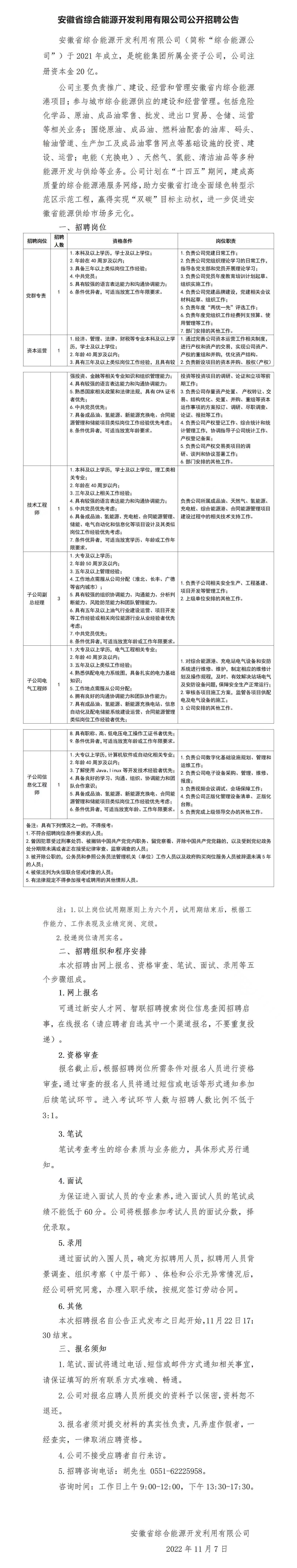 安徽省綜合能源開發(fā)利用有限公司公開招聘公告