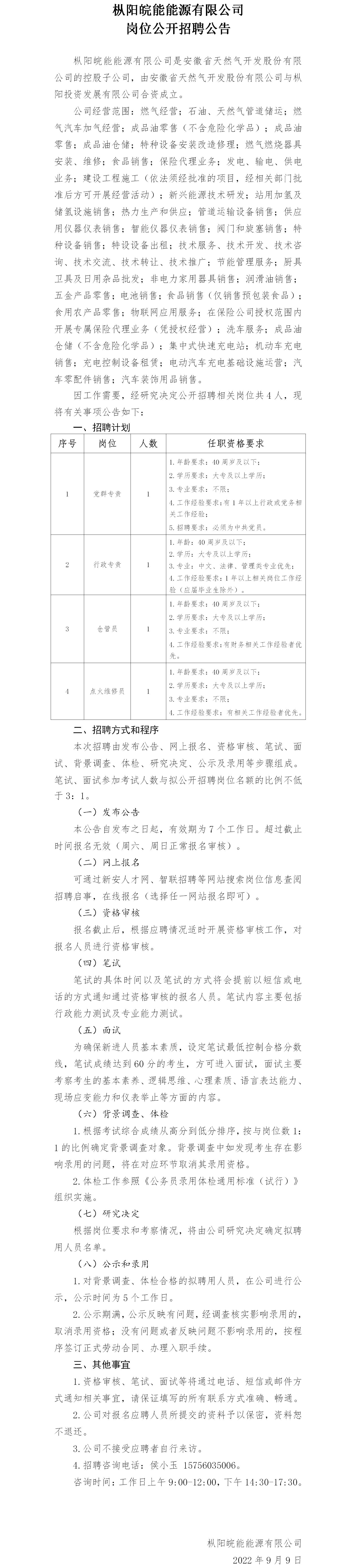安徽省生物天然氣開發(fā)股份有限公司招聘公告