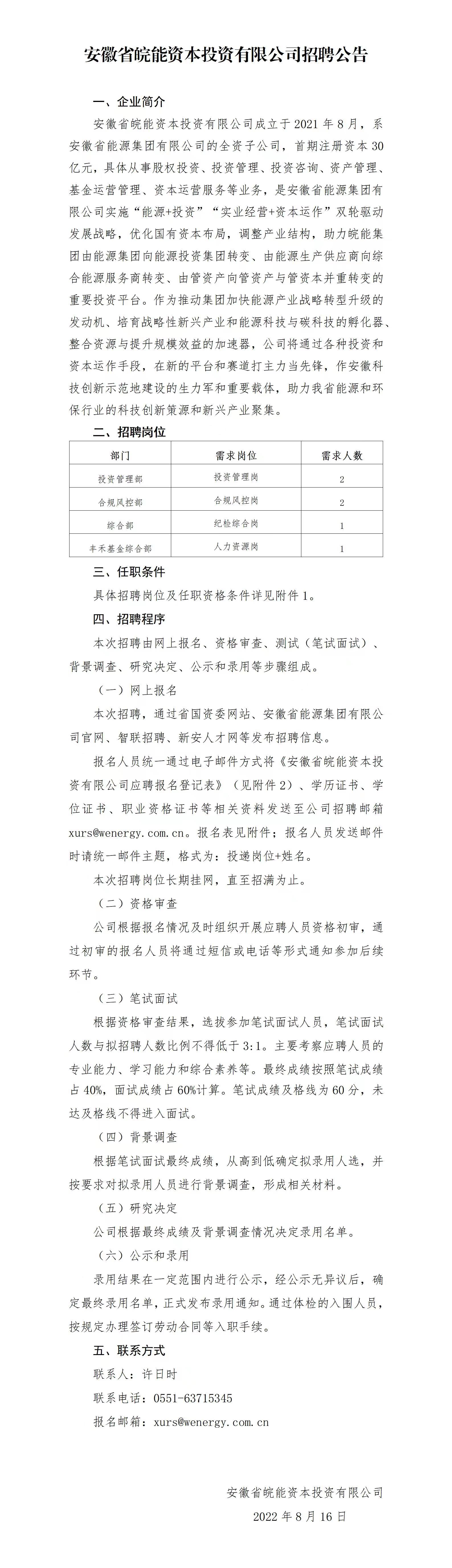 附件1:安徽省皖能資本投資有限公司擬招聘崗位職責(zé)說(shuō)明和任職資格條件.doc