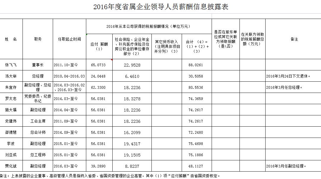 2016年度省屬企業(yè)領導人員薪酬信息披露表