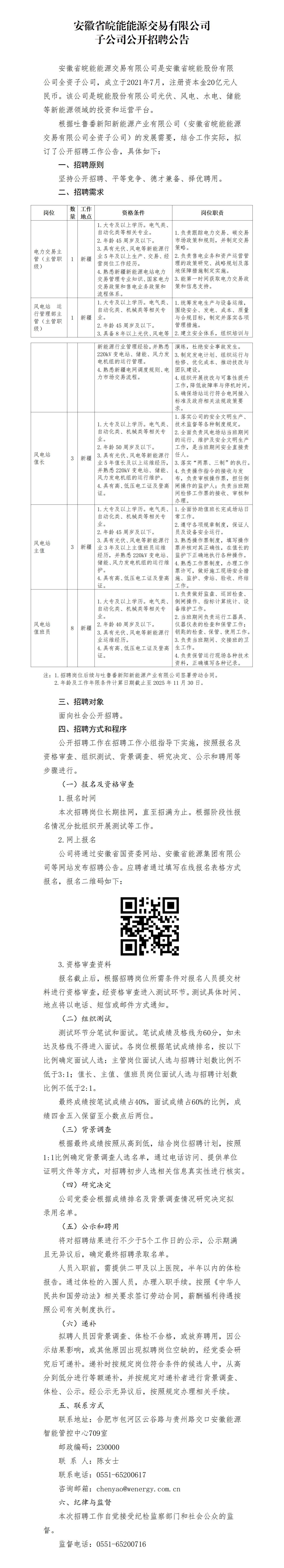關(guān)于安徽省皖能能源交易有限公司子公司公開招聘公告