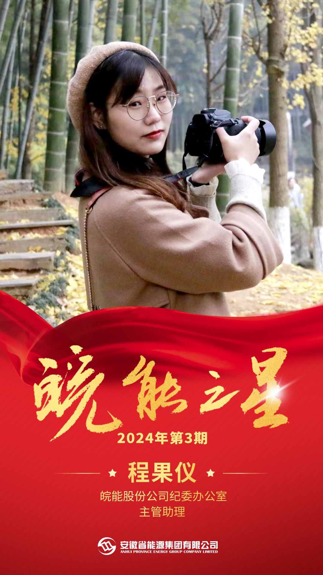 【頒獎(jiǎng)詞】從校園到職場(chǎng),她是腳踏實(shí)地的“鉆研者”;從黨建宣傳到巡視整改,她是急難任務(wù)的“排頭兵”;從推進(jìn)廉潔文化“六進(jìn)”到獲評(píng)“三好”黨建員,她是獨(dú)當(dāng)一面的“多面手”;入職三年,歷經(jīng)三個(gè)崗位,每一個(gè)都“來之能戰(zhàn),戰(zhàn)之能勝”;她讓我們看到:皖能“95后”,澎湃正當(dāng)時(shí)!