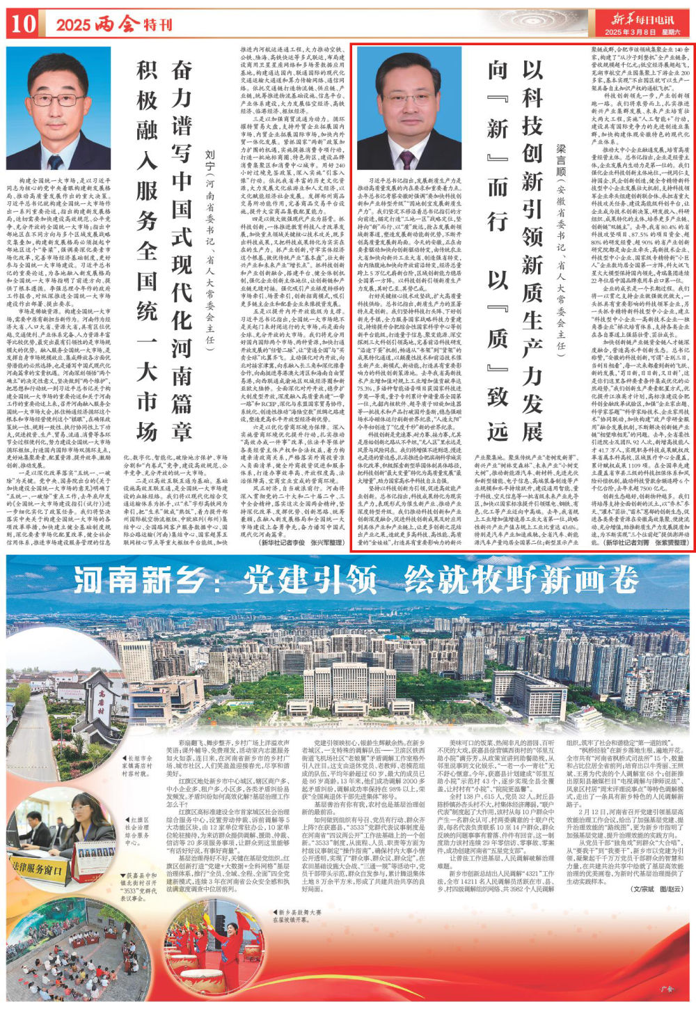 ??推動大中小企業(yè)融通發(fā)展,培育高質(zhì)量經(jīng)營主體??倳浿赋?,企業(yè)是經(jīng)營主體,企業(yè)發(fā)展內(nèi)生動力是第一位的。我們強化企業(yè)科技創(chuàng)新主體地位,一視同仁支持國企、民企創(chuàng)新創(chuàng)造,健全專精特新科技型中小企業(yè)發(fā)展壯大機制,支持科技領(lǐng)軍企業(yè)牽頭組建創(chuàng)新聯(lián)合體、承擔省重大科技攻關(guān)任務、建設高能級科創(chuàng)平臺,讓企業(yè)成為技術(shù)創(chuàng)新決策、研發(fā)投入、科研組織、成果轉(zhuǎn)化的主體,培養(yǎng)更多產(chǎn)業(yè)鏈、創(chuàng)新鏈“雙鏈主”。去年,我省80.4%的省科技攻堅項目、87.5%的項目資金、超80%的研發(fā)經(jīng)費、超90%的省產(chǎn)業(yè)創(chuàng)新研究院都是由企業(yè)牽頭,高新技術(shù)企業(yè)、科技型中小企業(yè)、國家級專精特新“小巨人”企業(yè)數(shù)均居全國第一方陣,科大訊飛星火大模型保持國內(nèi)領(lǐng)先,奇瑞集團連續(xù)22年位居中國品牌乘用車出口第一位。