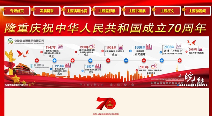 朱宜存指出,集團公司黨委周密部署、細致安排,確保生產(chǎn)安全平穩(wěn)、企業(yè)和諧安定,以實際行動慶祝新中國70周年華誕。同時,集團公司系統(tǒng)各單位以多形式、多層次、多角度開展豐富多彩的慶?;顒?,取得了較好的效果。集團公司舉辦“我和祖國共成長”主題演講比賽,開辟“慶祝中華人民共和國成立70周年系列主題宣傳活動”專欄,舉辦“我和我的祖國”展覽,展示廣大干部職工創(chuàng)作的優(yōu)秀書畫、攝影、微視頻作品,組織開展新中國成立70周年愛國主義教育毅行和觀影活動等。皖能合肥公司舉辦“我和我的祖國”合唱比賽,皖能馬鞍山公司舉行升旗儀式,皖能銅陵公司舉辦慶祝新中國成立70周年職工羽毛球比賽等。同時,各單位充分利用宣傳欄、網(wǎng)站、微信公眾號、LED大屏等宣傳陣地,積極營造熱烈喜慶、團結(jié)和諧、昂揚向上的濃厚節(jié)慶氛圍。皖能環(huán)保公司的主題微視頻、國安公司職工的攝影作品、新能公司職工的文學作品被省國資委微信公眾號選登發(fā)布。